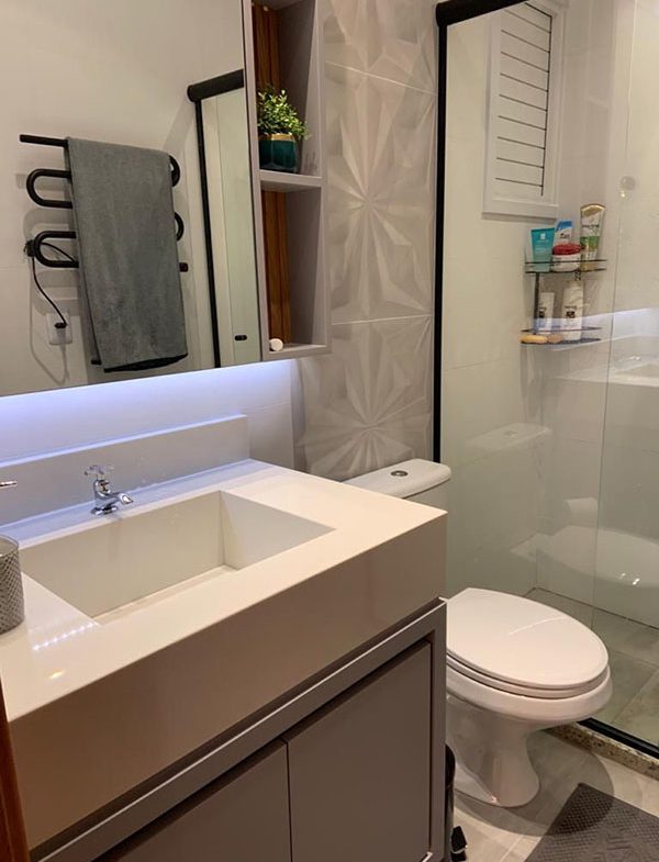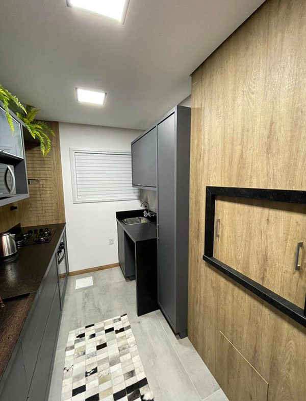 - Porcelanato no banheiro e cozinha;
