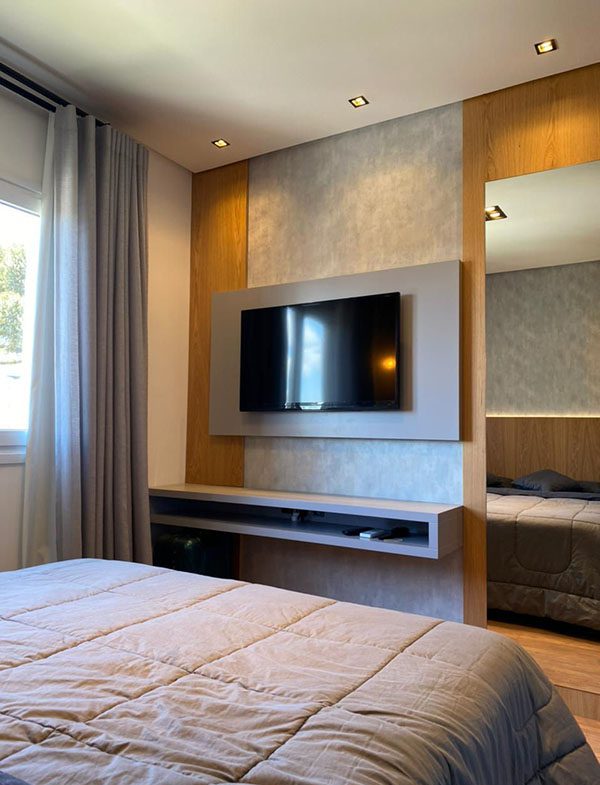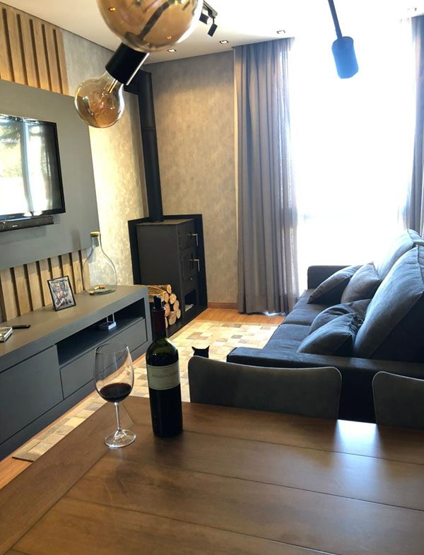- Lareira e split na sala e dormitório;