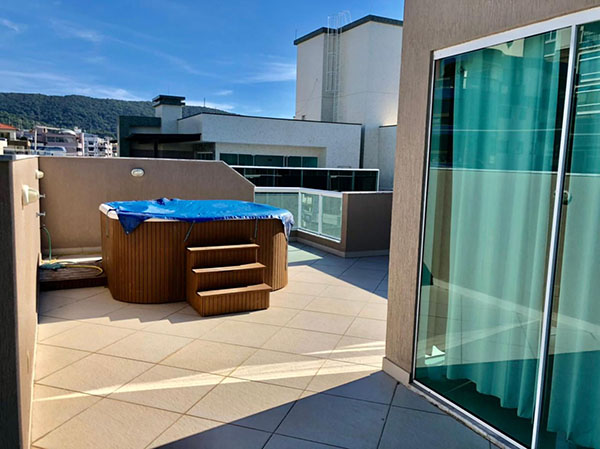 Banheira externa na parte aberta no terraço;